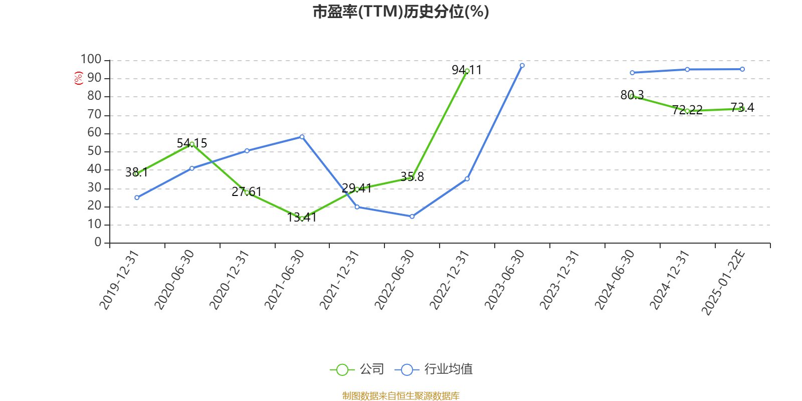 中证智能财讯汇顶科技(603160)1月22日晚间披露2024年度业绩预告,预计2024年实现营业收入43.7亿元左右,同比下降0.86%;归母净利润5.5亿元至6.4亿元,同比增长233.22%-287.75%;扣非净利润预计4.9亿元至5.8亿元,同比增长270.82%-338.93%。以1月22日收盘价计算,汇顶科技目前市盈率(TTM)约为57.57倍-67倍,市净率(LF)约4.27倍,市销率(TTM)约8.43倍。 以本次披露业绩预告均值计算,公司近年市盈率(TTM)图如下所示:     资料显示,公司是一家基于芯片设计和软件开发的整体应用解决方案提供商,覆盖传感、触控、音频、安全、无线连接五大业务,主要面向智能终端、汽车电子、物联网领域提供领先的半导体软硬件解决方案。 据公告,业绩变动原因为, 报告期内,公司超声波指纹、新一代光线传感器及NFC/eSE等新产品实现在品牌客户端的批量出货,受益于芯片采购成本下降及公司对现有产品迭代产生的积极影响,产品成本有所下降,毛利率水平得到有效提升;公司加强对资产的管理,未出现大额资产减值情况;公司注重坚持提升研发效率,持续优化销售费用和管理费用,使得销售费用、管理费用、研发费用总体支出同比实现下降。     核校:杨宁 指标注解: 市盈率=总市值/净利润。当公司亏损时市盈率为负,此时用市盈率估值没有实际意义,往往用市净率或市销率做参考。 市净率=总市值/净资产。市净率估值法多用于盈利波动较大而净资产相对稳定的公司。 市销率=总市值/营业收入。市销率估值法通常用于亏损或微利的成长型公司。 文中市盈率和市销率采用TTM方式,即以截至最近一期财报(含预报)12个月的数据计算。市净率采用LF方式,即以最近一期财报数据计算。三者的分位数计算区间均为公司上市以来至最新公告日。 市盈率、市净率为负时,不显示当期分位数,会导致折线图中断。